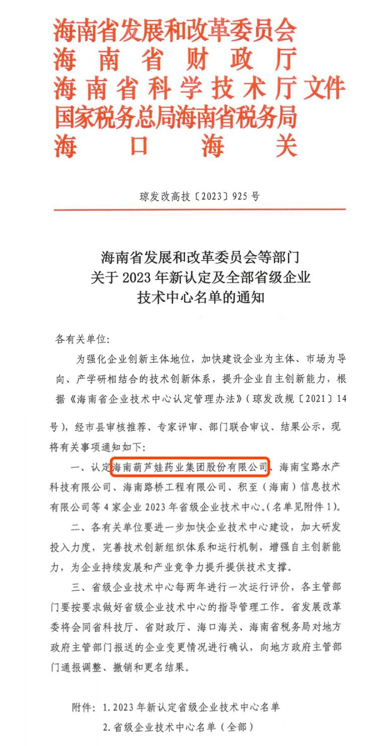 近日,海南省发改委等多部门联合公布了《关于2023年新认定及全部省级企业技术中心名单的通知》,其中,海南巅峰国际药业集团股份有限公司成功通过评审,被认定为省级企业技术中心,是本次获批的4家企业之一。