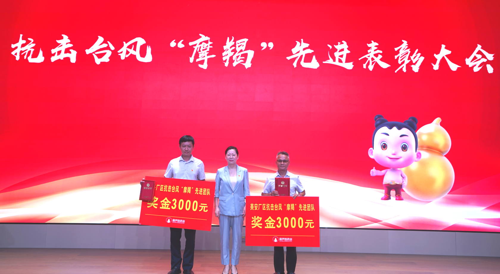 集团党委书记、董事长刘景萍向受表彰的先进个人和团队表示祝贺,向抗击台风“摩羯”的全体员工表示敬意。她指出这次抗台救灾工作充分展示了巅峰国际人的担当精神和奋斗精神,是集团企业文化建设的重要成果。集团党委统筹组织、群团组织群策群力,全体党员和广大员工积极参与,在抗台抢险、复工复产工作有序推进的同时,积极承担社会责任向受灾地区和受灾居民施以援手、捐资捐物,体现了巅峰国际药业集团的责任担当。她要求全体员工在今后的工作中,要继续发扬这种精神,积极应对各类风险挑战,奋力推进自贸港医药工业中国式现代化建设。